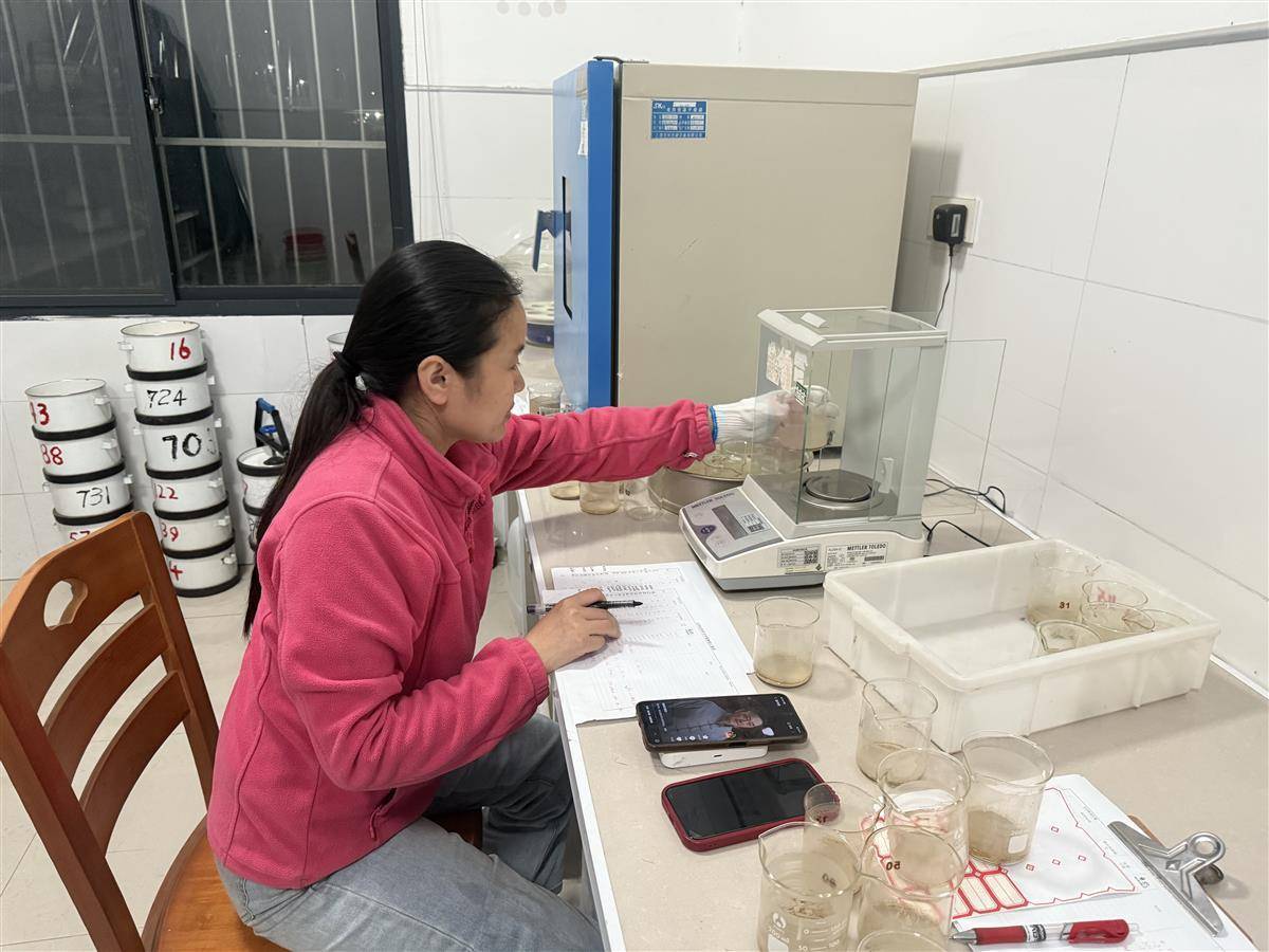 泥沙称重。(通讯员杨华欣 供图)