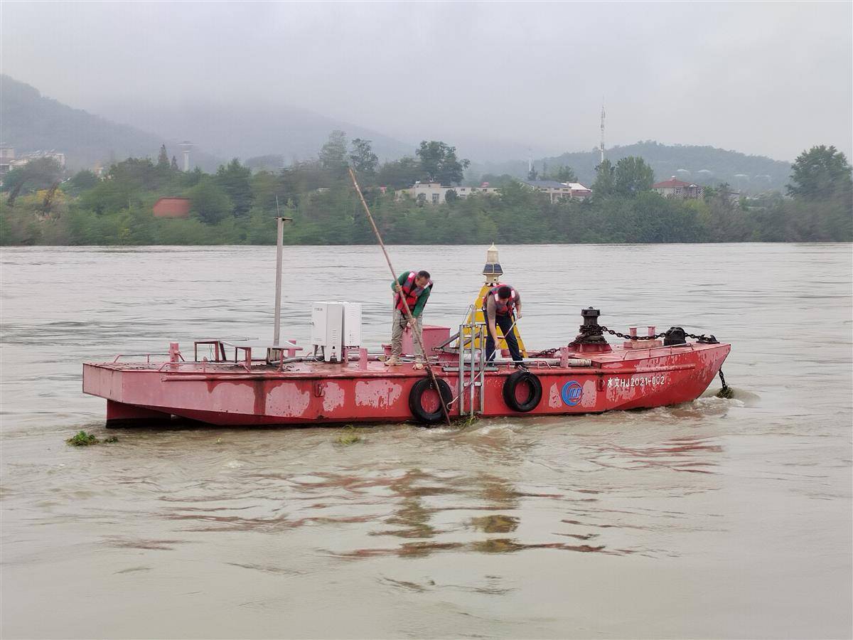 白河水文站测流。(通讯员杨华欣 供图)