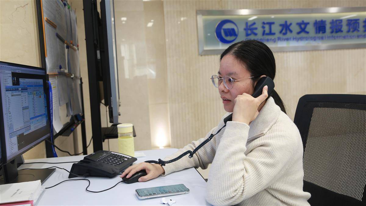 长江委水文局预报中心预报员进行水情报送作业。(通讯员 郑力供图)