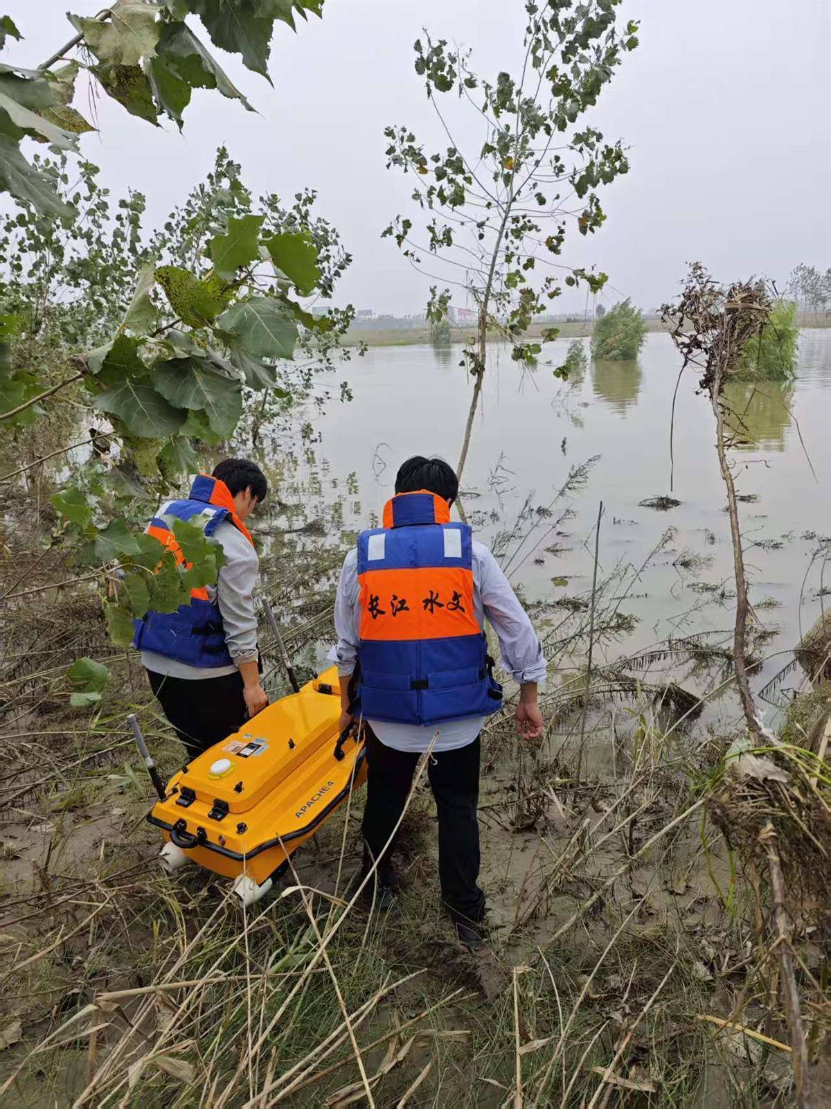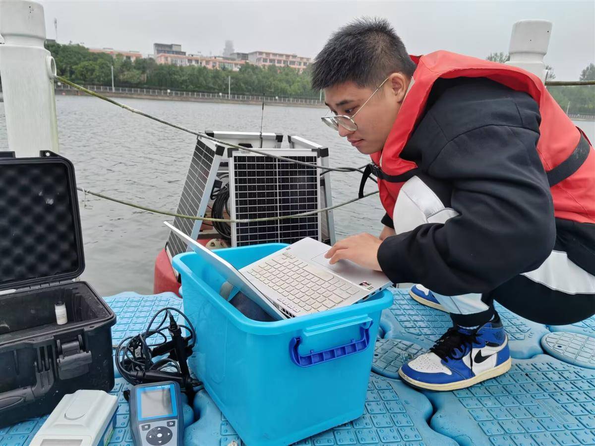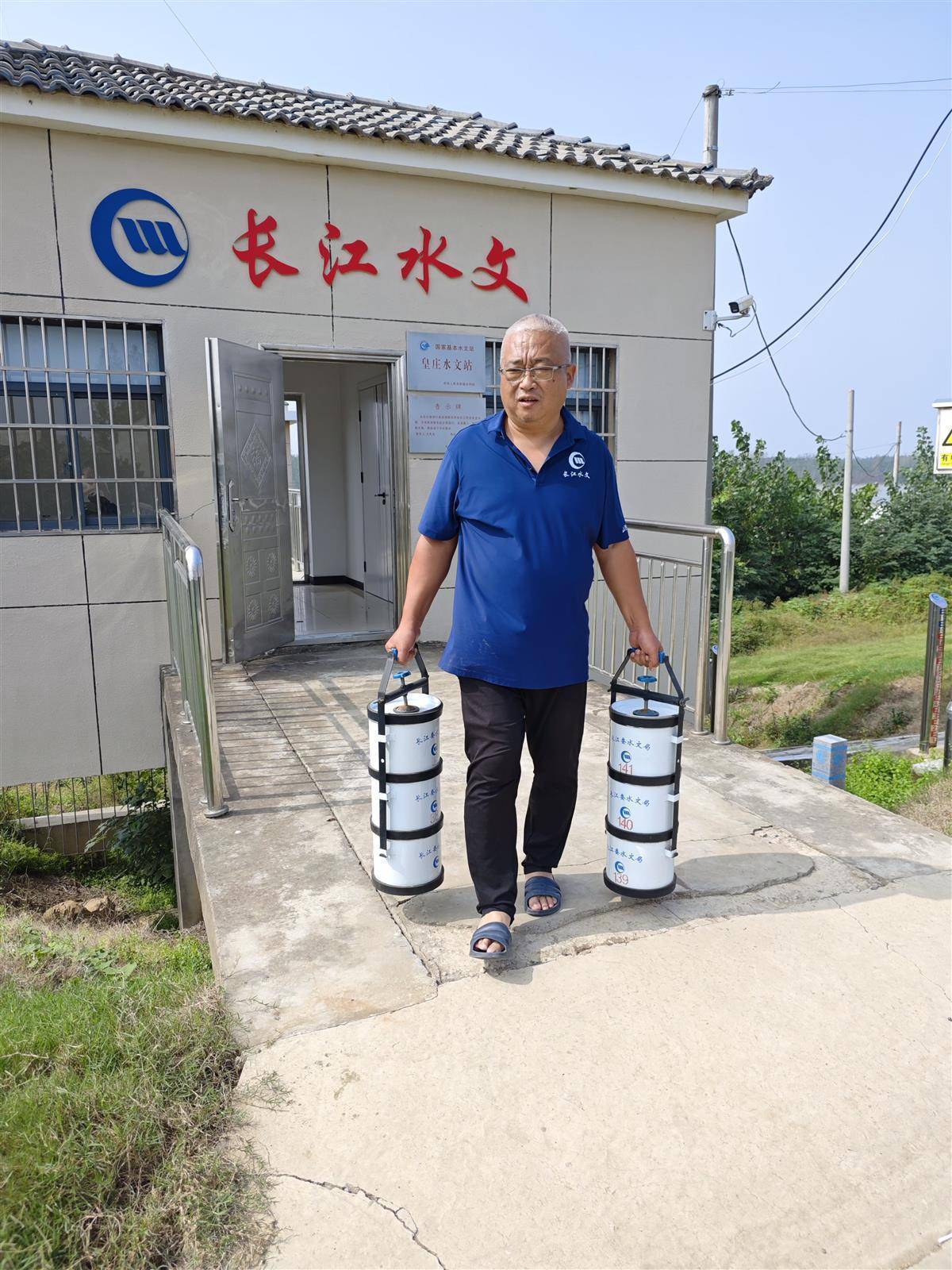 余家湖水文站测验人员维护泥沙在线监测设备。(通讯员杨华欣 供图)